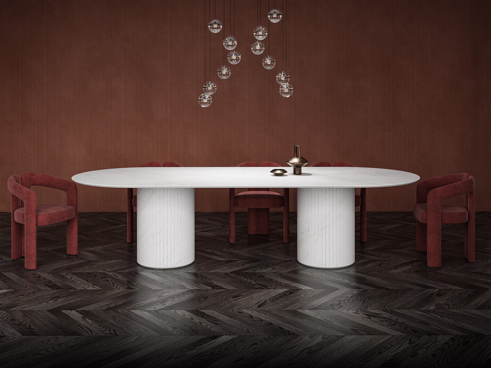 Versatile enough for stand-alone objects including dining and side tables, storage and media units, sideboards, shelving and seating, porcelain is also beautiful enough for one-off pieces of art. Your designs can be made to any size or shape, rectangular, circular or curved and can combine multiple materials including wood, glass, stainless steel or aluminium.