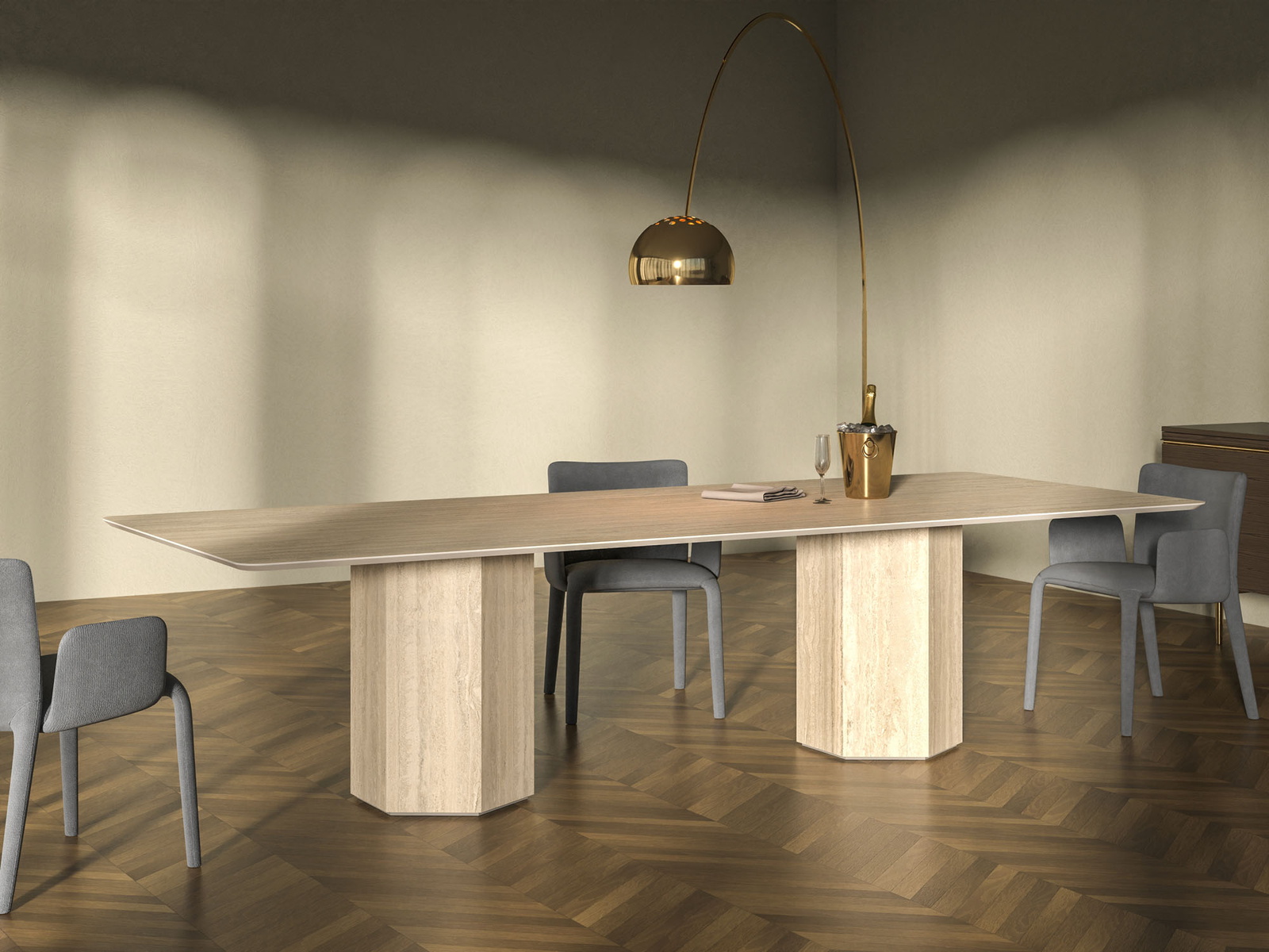 Hexagon Tiled Base | Solido 20 | Travertine Chiaro#7941 -