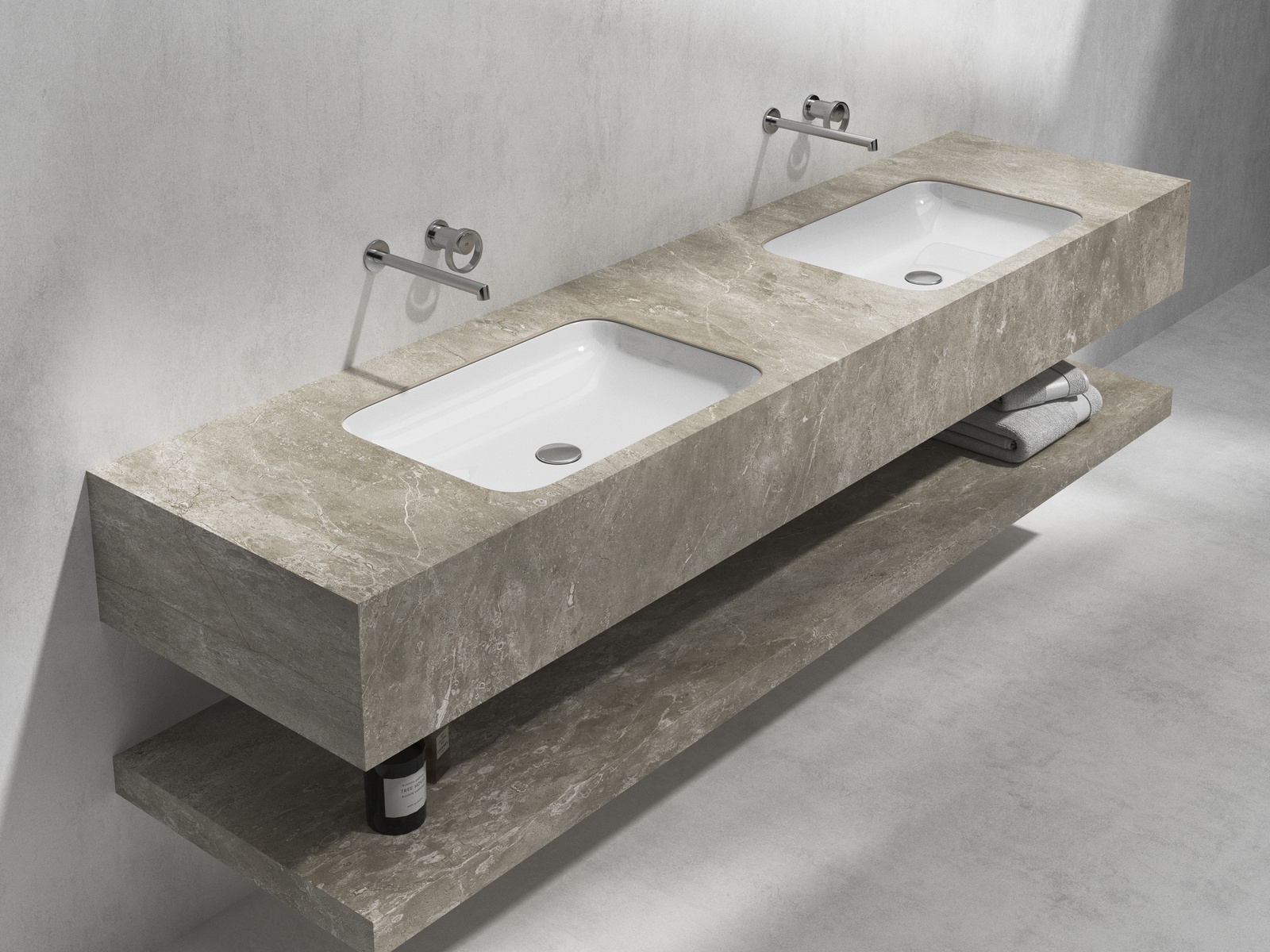 • Wall-mounted vanity with shelf